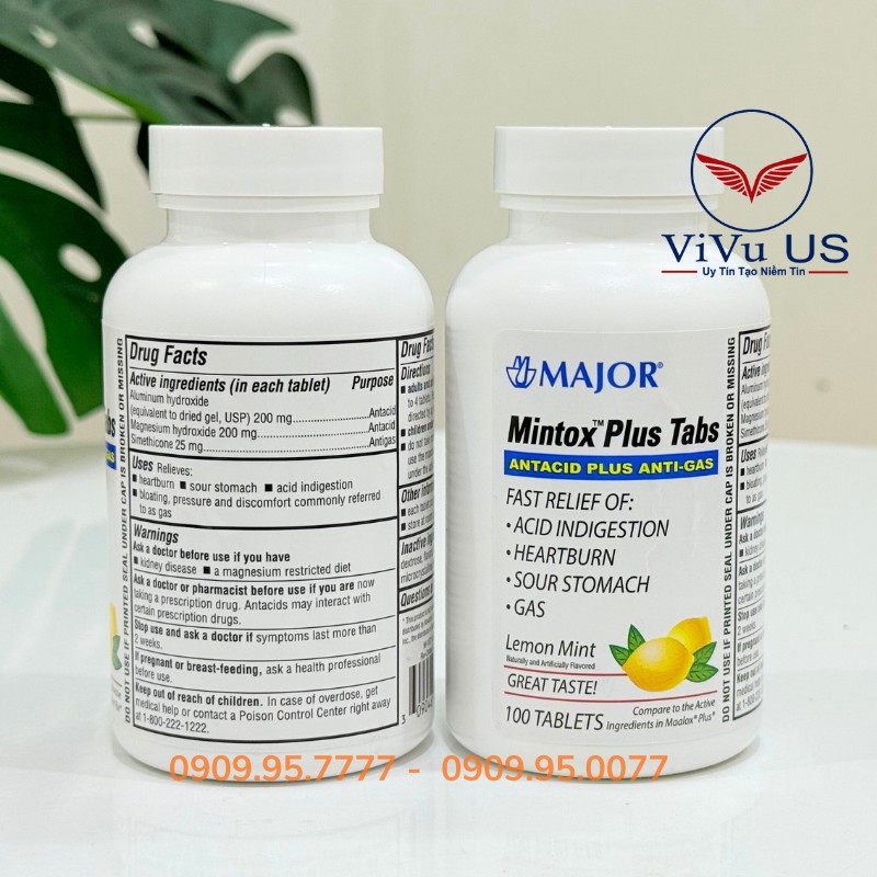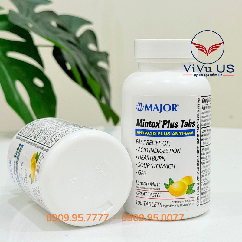 Công dụng Major Mintox Plus Tabs Antacid 100 viên của Mỹ