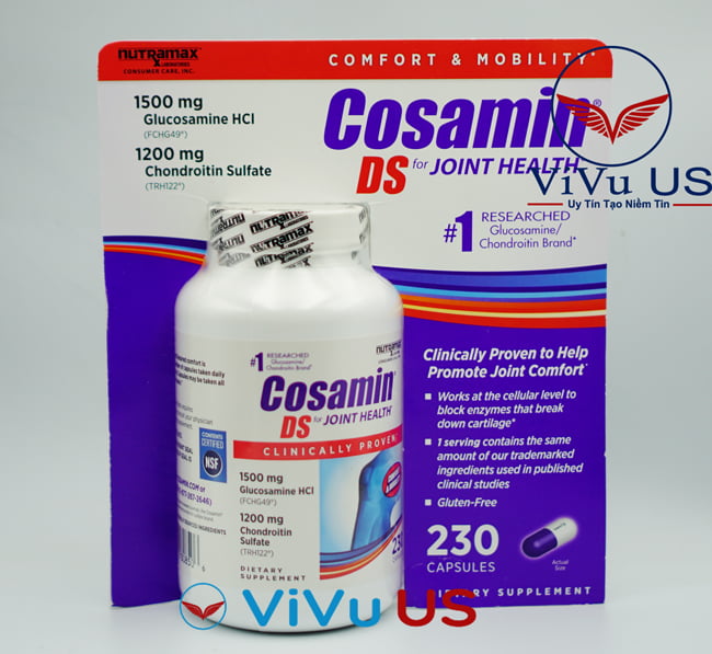 - Thuốc Cosamin DS Joint Health 230 viên với thành phần tiêu chuẩn xuất sắc cho một liều ba viên uống là Glucosamine HCI 1500mg và Chondroitin Sulfate 1200 mg, hỗ trợ hiệu quả cho việc giảm viêm đau và hỗ trợ điều trị xương khớp tối ưu.